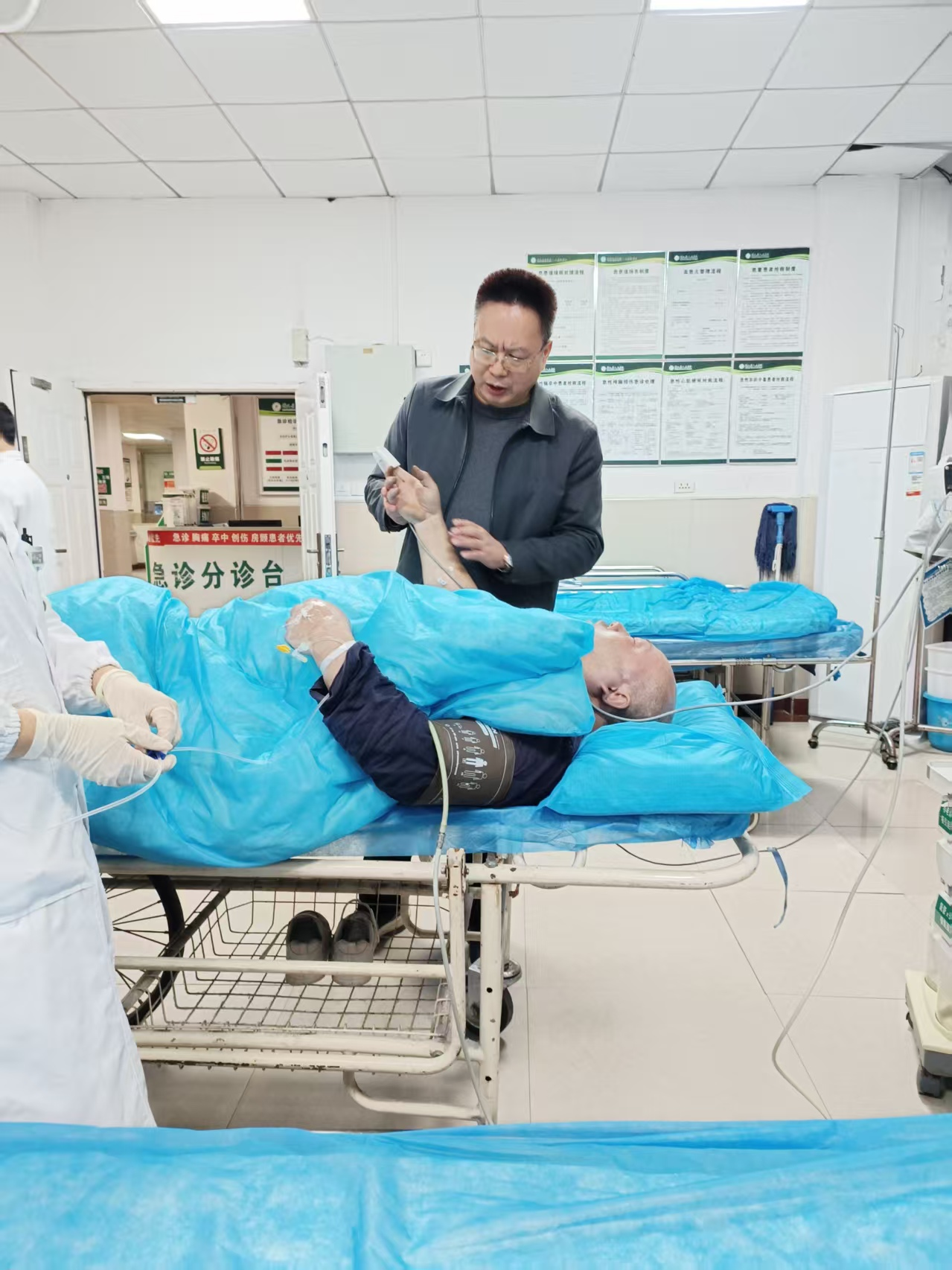 凭借扎实的基层诊疗经验和敏锐的健康管理意识,张涛迅速判断患者可能为心血管急症,情况十分危急。他顾不上吃饭,于18时45分亲自护送邹华林至团风县人民医院急诊科,同时第一时间与县级专家王和平主任取得联系,详细说明患者情况,为后续抢救赢得了至关重要的“首段时机”。